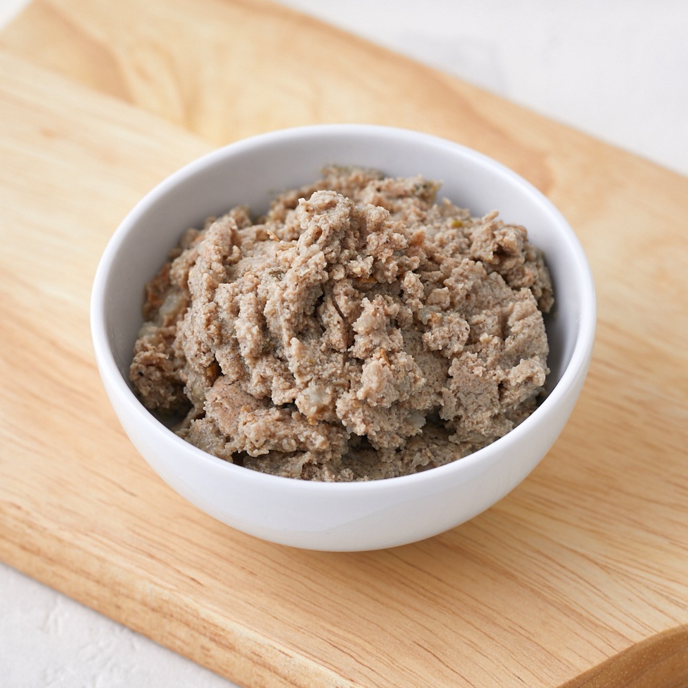 | 豚肉、豚レバー、米、人参、小松菜、ブロッコリー、おから、鮪油、黒糖、米ぬか、えごま、卵殻カルシウム、米麩、ビール酵母、フェカリス菌、水 ※原材料以外のものは一切使用しておりません。 |