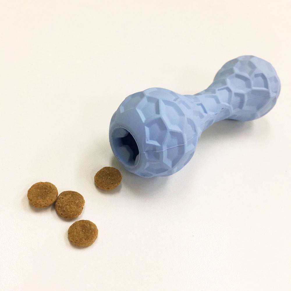 咥えやすい形で おやつも出しやすいため、知育トーイ初心者のわんちゃんでもたのしく遊べます。ナチュラルラバーの弾力で、遊びながらデンタルケアも出来ます。しっかりキャッチできる表面加工で楽しさアップ!