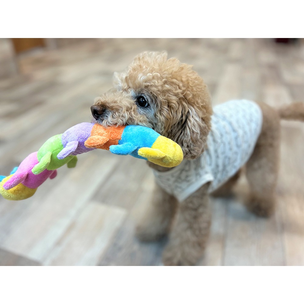 | ※オモチャはワンちゃんの大きさに合った物を選んでください。また人が見ているところで遊ばせ、少しでも破損してきたら誤飲の原因になりますので使い続けず新しい物と買い換えて下さい。 |