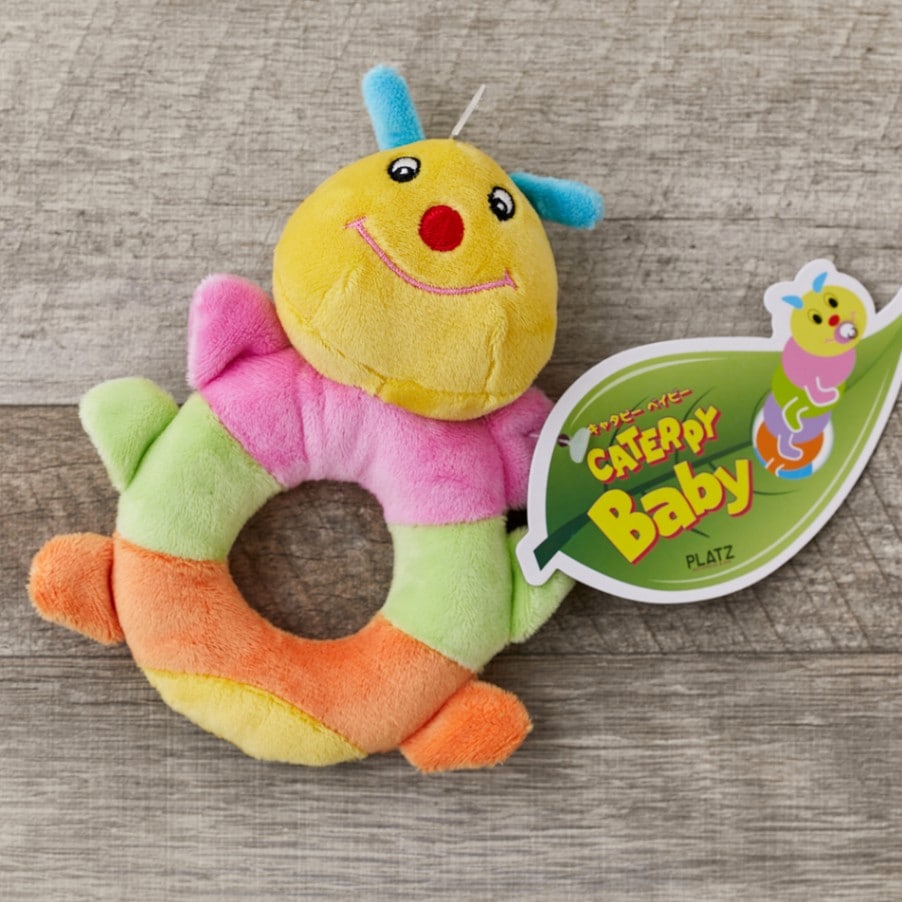 【オモチャ・キャタピーベイビーティーザー】噛む場所によって堅さが違うミニオモチャ。小型犬向き